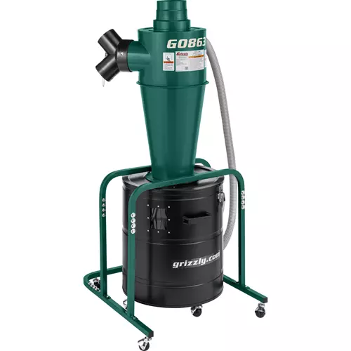 The G0863 Grizzly Growler Cyclone Separator provides industry leading dust and wood chip separation to handle all your demanding shop needs.