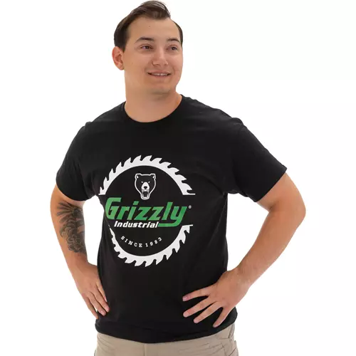 Sport your favorite tool and machinery brand with this black t-shirt made from soft cotton, featuring the Grizzly logo front and center!