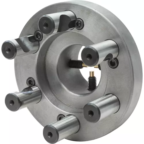 The Gunsmith's Back Plate has "spider" supports machined into them, which allows shorter barrels to be supported through the headstock of larger lathes. D1-5 type without guard.