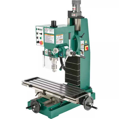 The latest addition to our family of benchtop mills has all the features you need to take on the most demanding projects. Start with the easy to use spindle speed control — just turn the dial to set your speed for optimum cuts and tool life. Tapping is also a breeze with switch control right in the handles. There are even digital displays for spindle speed, spindle height and head angle for excellent heads-up operation! And, don’t forget the powerfeed for the head — no more cranking here, just push a button to clear the tooling, change it out and push another button to drop it down to get back into the action!