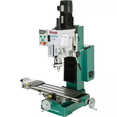 This Variable-Speed Mill/Drill is an ideal choice for slow-speed, high-torque requirements in shops operating on a 220V single-phase power supply. By utilizing a built-in Variable Frequency Drive (VFD), a 3-phase motor can be used instead of a single-phase motor, providing variable-speed control and superior torque at slow speeds. With most other machines, slow-speed motor operation reduces the motor fan’s ability to help dissipate heat, meaning that frequent operation at slow speeds will reduce the life of the motor. However, this machine is equipped with an independent high-CFM fan on top of the motor to keep it nice and cool all day long. What’s more, it has a digital display for spindle speed, longitudinal power feed, dovetail ways, and high-precision P5 spindle bearings.