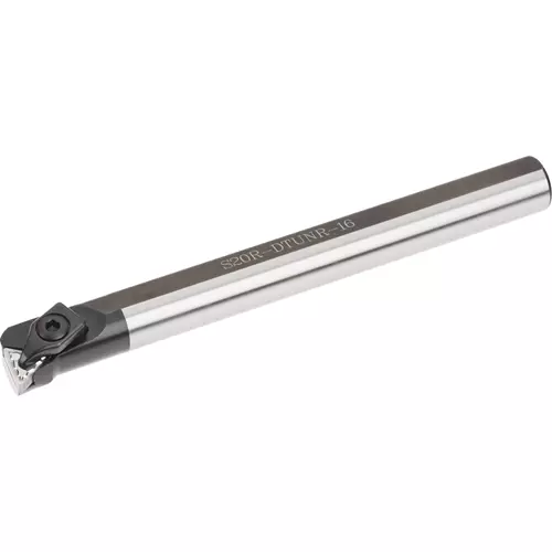 This heavy-duty boring bar has a negative rake of 15° and a 5° lead angle. The clamping system allows quick insert change overs. The inserts available are 2 sided giving you 6 cutting edges per insert. Inserts not included.Shank: 20mm Overall length: 200mm Hand: Right hand Cutting edge angle: 95 Deg. Compatible Insert: T10379