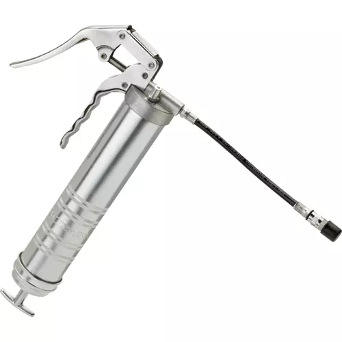 The single hand lever pump action and a flexible nozzle allows this heavy-duty Grease gun to access hard-to-reach places.It uses standard 14-1/2 oz grease cartridges, or can be easily converted to allow filling from a bulk container or filler pump.