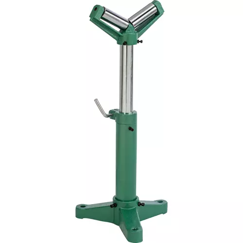 With a heavy-duty cast-iron base, this stout roller stand is specially tailored to handle round stock.