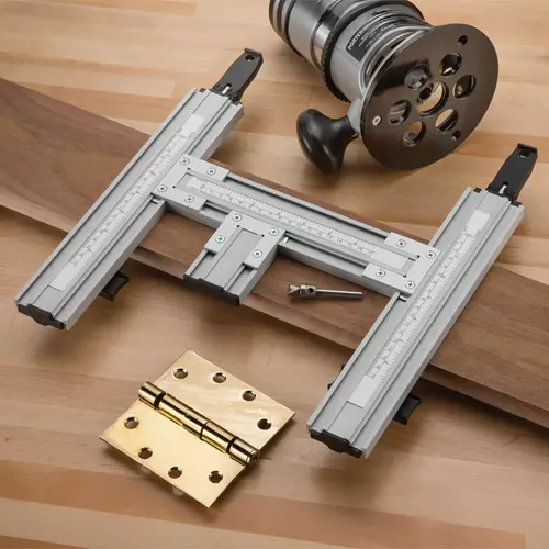 Simply attach the hinge mate to your workpiece, make the proper adjustments for your mortise width, make cut with router, and attach your hinge–it's that easy!INCLUDES: