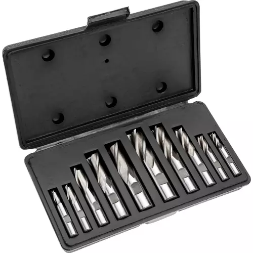 The G9758 10-Piece HSS 4 Flute End Mills Set is a complete set for removing metal during milling operations.