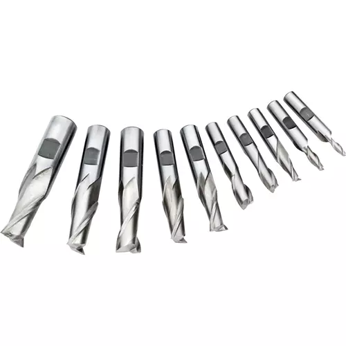 The G9757 10-Piece HSS 2 Flute End Mills Set is a complete set for removing metal during milling operations.