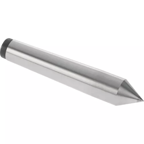 A live center supports a workpiece on a lathe between the headstock and tailstock.