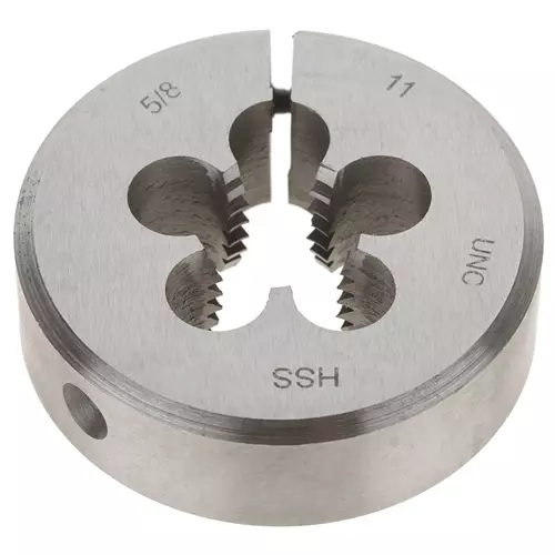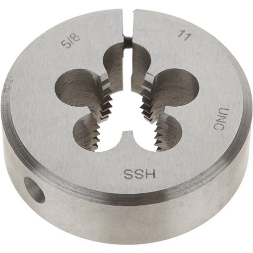 The G6964 5/8"-11 x 2" HSS Round Adjustable Split Die provides straight, clean, and easy threading.
