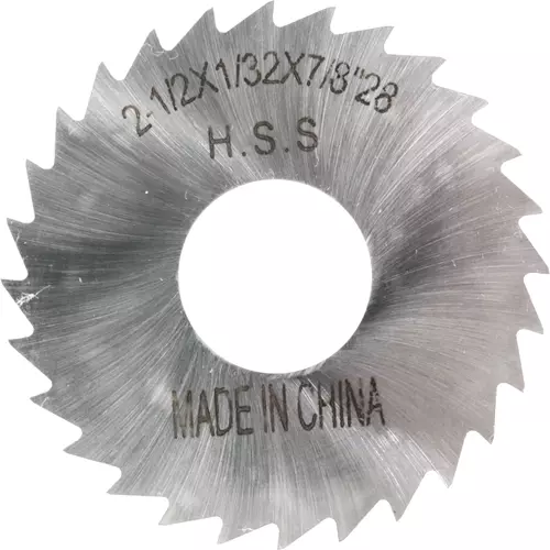 The 2-1/2" diameter blade is 1/32" thick, features 28 teeth, and has a 7/8" standard bore.