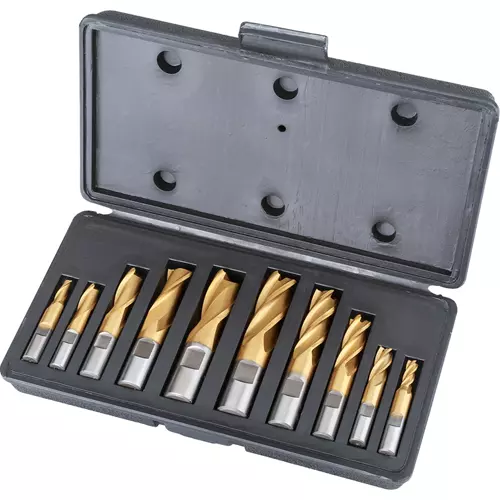 The G9763 10-Piece HSS TiN Coated Flute End Mills Set is a complete set for removing metal during milling operations.