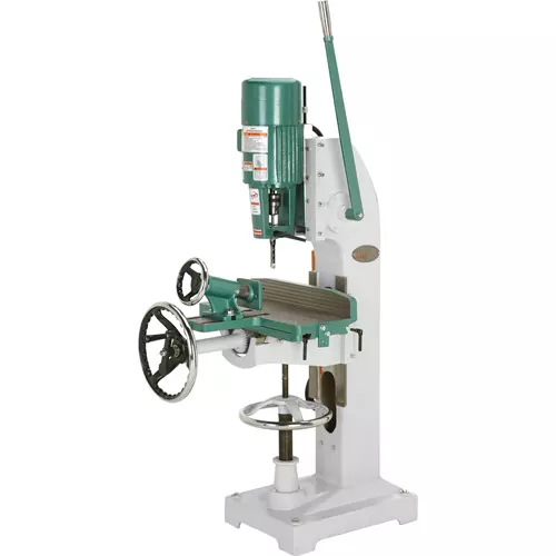 This Industrial Hollow Chisel Mortiser features a mighty 2 speed, 2 HP, 220V, three-phase motor capable of plowing through thick pieces of hardwood all day long without bogging down. Extremely versatile, the universal compound table provides generous vertical, cross, angle and longitudinal travel. This mortiser's combination of price, power and versatility makes it the standard for all others to follow.