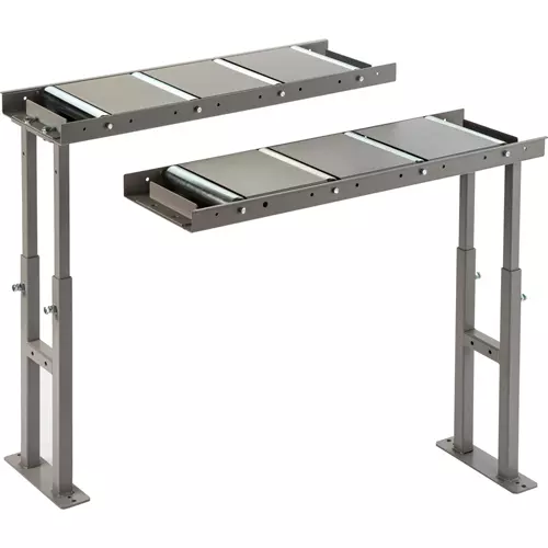 Increase material handling and processing efficiency with the T30399 Infeed/Outfeed Roller Set. Designed specifically for the G0613 and G0614 Metal-Cutting Bandsaws, these heavy duty rollers are ideal for repeated cuts in a production environment. Each table is 51" long and 12” wide, and adjustable in height from 30" to 49".