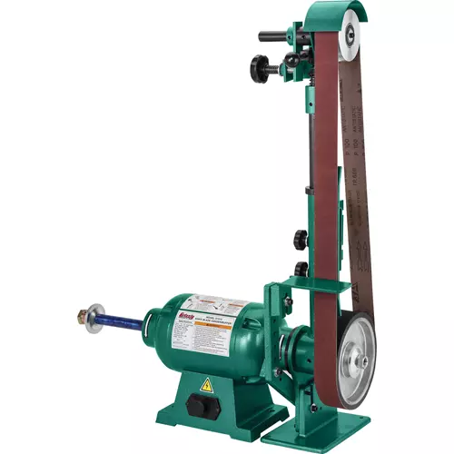 The long belt arm on the G1015 Knife Belt Grinder, Belt Sander, and Buffer is exactly what you need for grinding metal and freehand shaping. Perfect for knife makers, the 2" x 72" belt quietly runs at 3600 FPM complements of the full 1 HP motor. A full range of replacement belts are available.