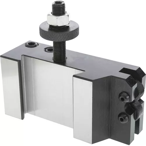 Dual purpose Tool Holder features hardened and precision ground medium knurls on one end and tool bit holder on the other end.