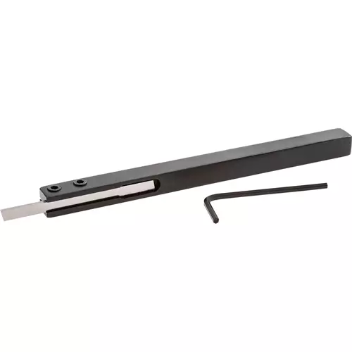The H7543 3/8" x 3/8" x 5 1/2" Long Parting Off Tool will reach into areas that may otherwise be off limits for shorter parting off tools. Dual clamping setscrews hold the 1/16" x 3/16" x 2 1/2" cut off blade securely in position. Ideal for extremely fine parting off work.