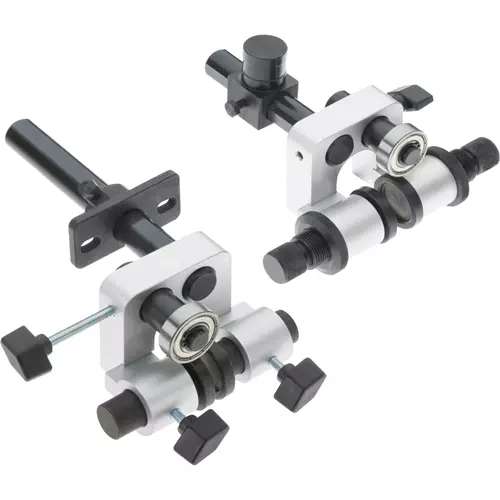 Euro-style steel guides run cooler and are extremely wear resistant compared tostandard ball bearing guides. Fits the G0531/G0566 and G0568/G0569 Bandsaws. Set includes both upper and lower guides.