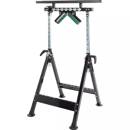 With a 440-pound capacity and 14-1/2" wide horizontal/cylindrical rollers, this roller stand can support your large, heavy workpieces – no need for an extra table.