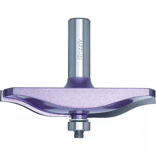 Our 3-1/2" O.D. panel bit produces a 1-1/4" reveal. Use of a 3 HP router is recommended with a router table. Features a shear angle, an anti-friction coating, and a guide bearing. This bit has a 10 degree upshear for quick chip removal. Complete with bearing guide. 2mm thick carbide!