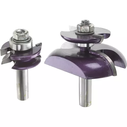 This Panel Bit Set includes reversible ogee stile & rail bit and convex panel bit with undercutter for consistent results. Carbide Tipped bits are super sharp "purple" quality bits that will leave an outstanding finish on your wood. 1/2" Shank.