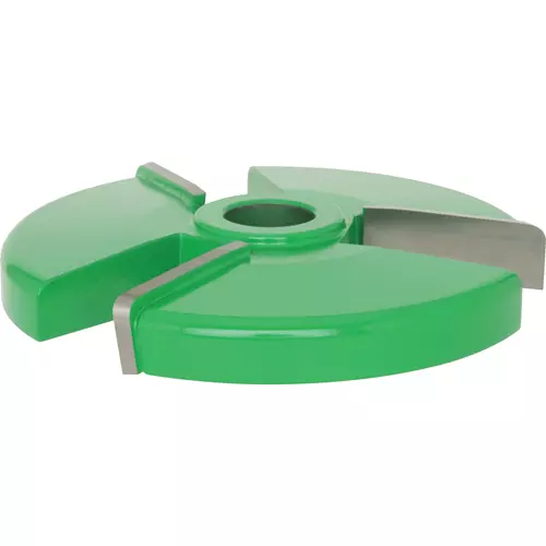 Our panel cutter is designed with a 10 degree upshear for faster, smoother cutting and longer life. For 1/2" - 3/4" spindle shapers. Carbide thickness is 3mm thick, not 2.5mm like our competition. Top quality product.