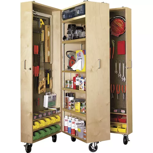Use these plans to build this Mobile Tool Cabinet. The finished project occupies only 2'x2' of floor space. The finished closed cabinet measures approximately 24" wide by 24" deep by 66" tall