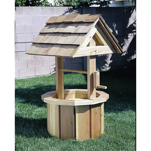 These project plan create a small wishing well, built from standard redwood lumber. Full-size traceable patterns. The finished project measures 40" tall by 27" in diameter.