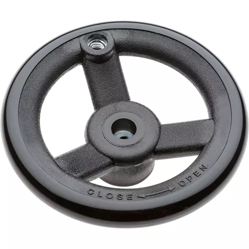 A durable, yet inexpensive alternative to cast metal handwheels. Includes locking setscrew. Handles sold separately.