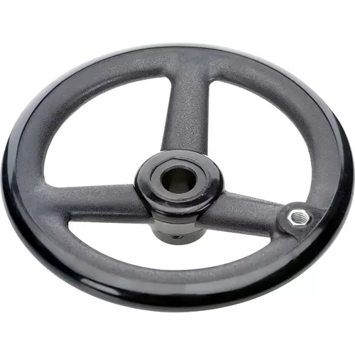 A durable, yet inexpensive alternative to cast metal handwheels. Includes locking setscrew. Handles sold separately.