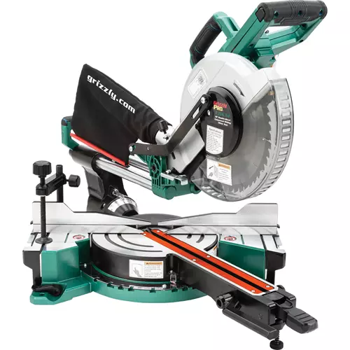 The Grizzly PRO® T31634 10" Dual-Bevel Compound Sliding Miter Saw can handle cross cuts up to 3-5/8" x 12".