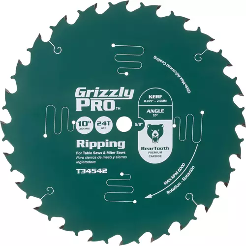T34542 Grizzly PRO™ 10" x 5/8" 24T ATB Thin Kerf Ripping Saw Blade