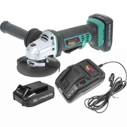 Grizzly PRO® T30299X2 20V 4-1/2" Angle Grinder with two 2.0Ah Li-Ion Batteries & Charger