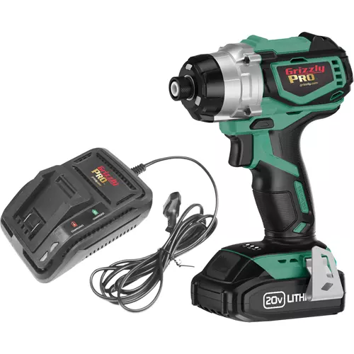 Grizzly PRO® 20V Brushless 1/4" Impact Driver with 2.0Ah Li-Ion Battery and Charger