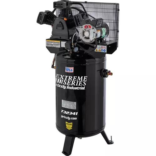 The Grizzly PRO® 40-Gallon 5 HP Extreme Series Compressor offers high-output performance for maximum air requirements. The 5 HP 220V motor operates with a maximum pressure of 150 PSI. This compressor delivers 18.0 CFM at 90 PSI and 20.0 CFM at 40 PSI.