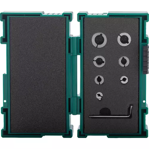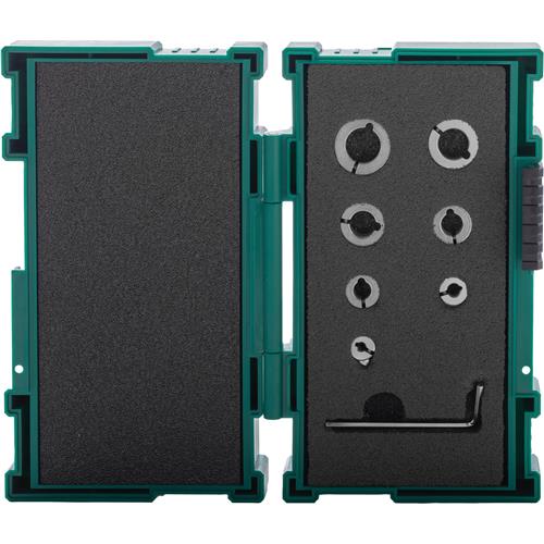 The set offers seven depth stop sizes with set screws made from 304 stainless steel to prevent stripping out. A hex wrench and storage case are included.