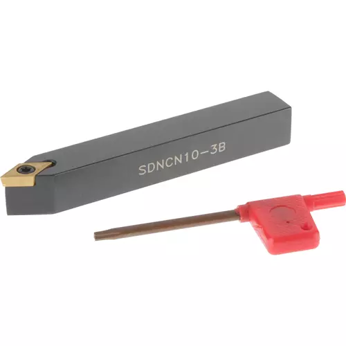 Uses 55° diamond DCMT 32.51 inserts. This tool holder has a 5/8" x 5/8" shank, 4-1/2" OA length, 0° rake, and 27.5° side cutting edge angle.