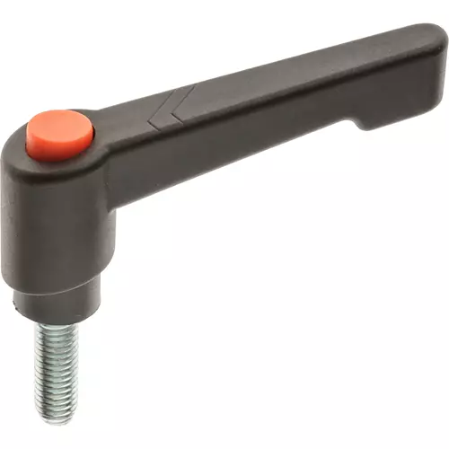 Adjustable clamping handles can be used on machinery and jigs allowing for quicker set-ups. Once in place, the handles can be rotated away from the workpiece just by pulling up on the handle and turning. Great time-savers! Stud size: M8-1.25 x 25. Type: Male.
