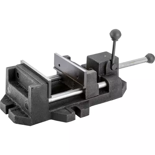 This quick release drill press vise puts the word production in production work. Simply slide the jaw against the workpiece, pull down the cam action lever and the workpiece is automatically secured. No more turning vise screws. Includes a sturdy lip along both sides of the base, allowing vise to be mounted to nearly any machine table, using common T-slot clamps.
