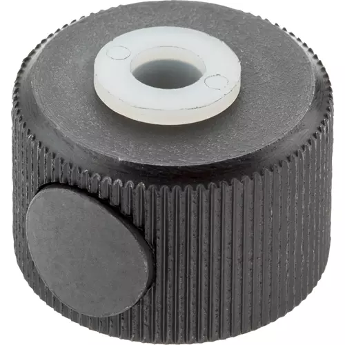 Great time savers! These button thread nuts allow quick adjustments on long thread lengths. Ideal for custom clamping jigs. Simply press the button and the threads disengage for easy movement up or down the screw. Release the button and the threads engage for normal turning. Size: 3/8" - 16".