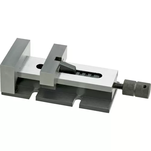 Securing your work is quick and easy with this 2-5/8" tall Quick Vise. A simple pawl engages a rack that is advanced by the vise screw, so very little turning is required to tighten the vise. Includes a sturdy lip along both sides of the base, allowing vise to be mounted to nearly any machine table, using common T-slot clamps.