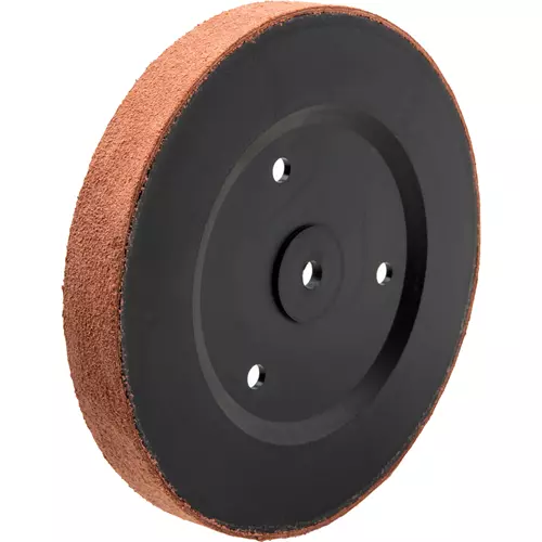 The leather stropping wheel helps remove burrs and hones to a final razor edge.