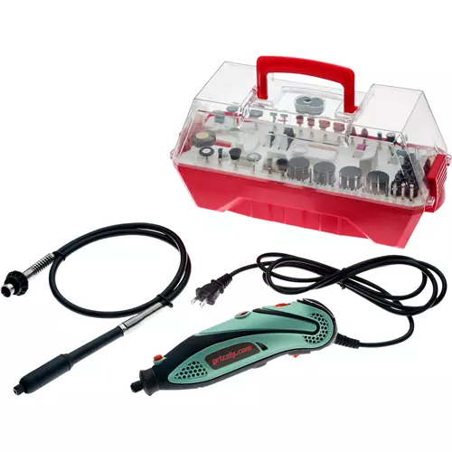 The handy T10828 Rotary Tool includes a large assortment of rotary tool accessories in a well-organized, space-saving case.