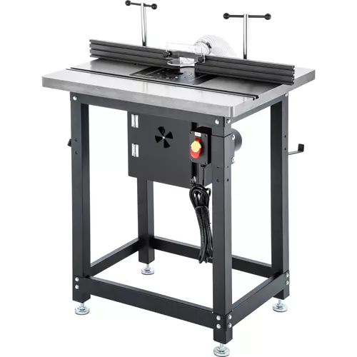 A router table with a built-in lift provides a safer and more stable platform for routing operations, reducing the risk of injury