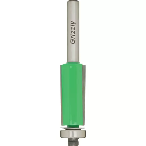Features a shear angle, an anti-friction coating and a guide bearing. Shearing action provides smooth face finishing. No lifting of laminate and less taxing on router.