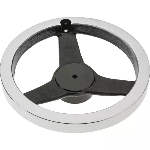 These Spoked Handwheels feature a chrome outside ring with black painted spokes. Bore size for each is 5/16" and must be drilled, threaded, and keyed to suit individual needs. Handle bores are 1/4". Handles sold separately. Size: 10"