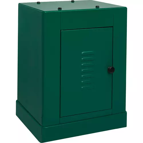 It has built-in storage with a hinged door and welded steel shelf. Use it to store your manual, sanding discs, sanding belts, and belt cleaners, and more.