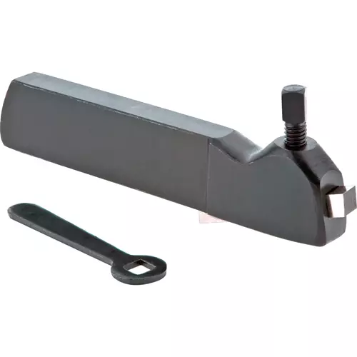This Straight Turning Tool Holder comes supplied with a wrench and 1/4" high speed steel tool bit. Tool bit is held at 20º to the shank; plenty of angle to give you the exact adjustment you need. Holder size is: 3/5" X 1-2/5" X 7". Bit size: 3/8".