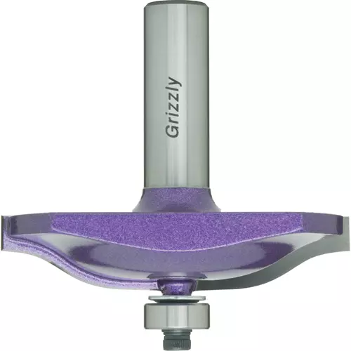 Sometimes you want the best money can buy; sometimes your project requires you to use the best router bits made. If so, this router bit fits the bill! Starting with a better quality steel for the bodies (SAE4140), we heat treat it to the appropriate hardness and apply K10 micro grain carbide. We then precision grind the blades to 800 grit (using the wet grinding process) so that it is razor sharp and then finish it with a baked-on metallic paint. This router bit is made for us and to our exacting specifications in an ISO 9001 rated factory. The purple color used on our Super-Duty Router Bits is a registered trademark and is owned by Grizzly Industrial. Features a shear angle, an anti-friction coating, and a guide bearing. For use with a router table.