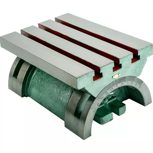 The precision-ground cast-iron top and base allow the table to tilt from -45° to +45°.