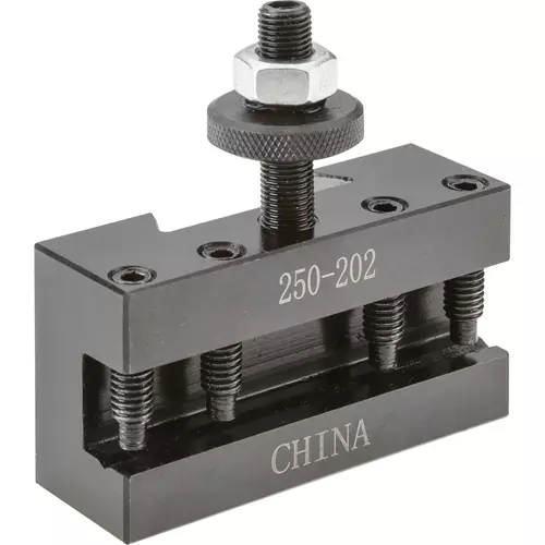 Milled V-groove secures round shank tool bits as well as square tool bits. Series 200 accepts 1/2" shank and 1/4" - 5/8" tool bits.